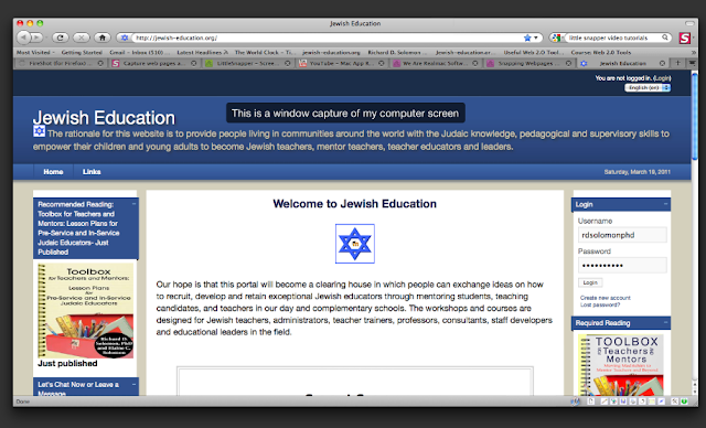 Below you will find three examples of how I used Little Snapper for Judaic instruction and the training and mentoring or pre-service and in-service Judaic educators. These pictures relate to our course website, http://jewish-education.org/